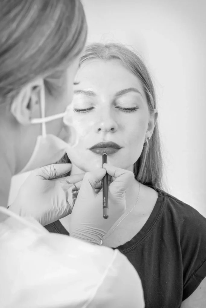 A corrective technique that evens out darker tones in the lips before adding the desired shade, creating balance and harmony. Initial sessions focus on lightening and neutralising uneven pigmentation, followed by building the final colour. Results develop gradually.